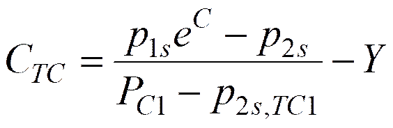 p2sおよびPC1は成分1と2の蒸気圧および成分1の臨界圧をそれぞれ表す。P2s,TC1は成分1の臨界温度における成分2の蒸気圧である。その収束関係は次のTCライン(Thermodynamic