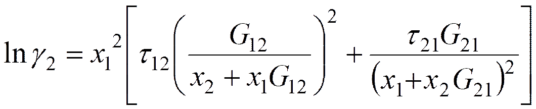 lnγ1∞、および、B = lnγ2∞の両方が満たされている。二定数NRTL式は次のように与えられる。