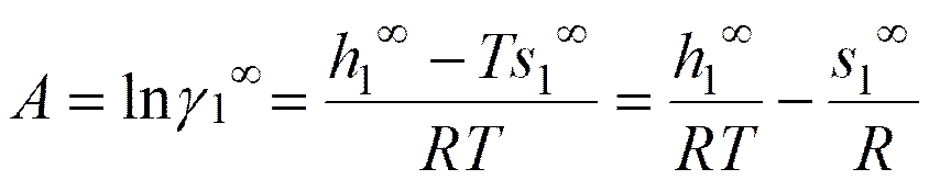 軽質成分1の無限希釈部分モル過剰エンタルピーh1∞とエントロピーs1∞は次式によって定義される